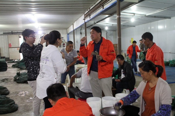 虽然已是9月17日凌晨四点,但车水马龙人声鼎沸,有送卖蟹的,有发运蟹的,有询价的商谈,有交货的吆喝,有经纪人的镇定,有蟹农的匆忙……,兴化河蟹市场特有的繁华交易场景,吸引了摄制组一行顾不上夜里的疲倦,连轴转赶到安丰国蟹市场。摄制组忙完了市场夜景的航拍,接二连三采访了市场经纪人、发运点和航运点,聆听着他们今年经营兴化大闸蟹的感受和直觉,感受着他们今年对兴化大闸蟹的信心和激情,一袋袋分拣好的各种规格雌雄兴化大闸蟹预示着他们收获今年更好的秋天。